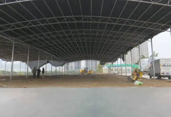 हटाउन योग्य वा चल संरचना, जस्तै अस्थायी प्रदर्शनी हल वा भवन।